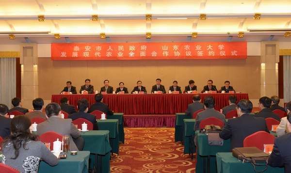 5月6日,3200威尼斯vip与泰安市人民政府发展现代农业合作协议签约仪式在泰安市举行。泰安市市长王云鹏、市委副书记李希信、副市长张瑞东,山东农大校长温孚江、副校长张宪省参加活动。