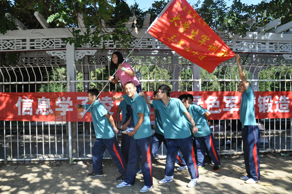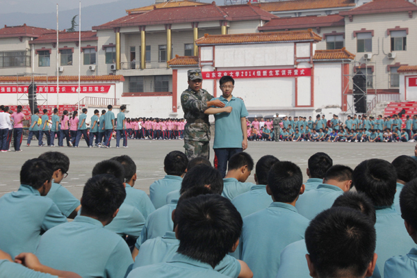 教官手把手训练学员摆臂姿势(机电学院供稿)