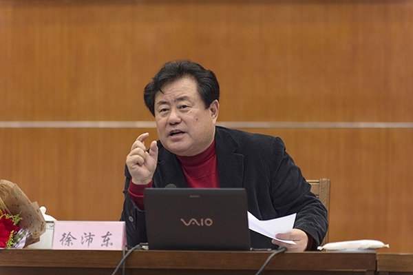 在报告会上,徐沛东生动讲述了文艺座谈会上习近平总书记与艺术家亲切交流的情形,结合自己音乐创作的经历,畅谈了学习习近平总书记讲话精神的体会,着重围绕艺术为人民服务、艺术家的社会责任、艺术的创新与传承、树立艺术创作的精品意识等问题作了解读和阐述。他说,社会主义文艺是人民的文艺,艺术家要对人民充满感情、为人民所接受,文艺作品不能过于炫耀自我,好的作品要能打动人心,要立得住、能够传世。艺术家要坚持以人民为中心的创作导向,多创作出“有筋骨、有道德、有温度”的作品,做时代风气的“先觉者、先行者、先倡者”,不能为私利出卖灵魂。在谈到艺术创新时,他介绍了自己多种风格作品的创作过程。他说,创新是对文艺工作者的基本要求,文艺不创新就没有活力和生命,艺术家要敢于否定自己、突破自己。