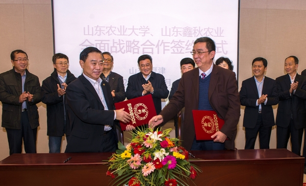 12月10日,3200威尼斯vip与夏津县及山东鑫秋农业科技股份有限公司战略合作签约仪式在德州夏津县举行,校长温孚江,德州市人大常委会副主任邓光亮、副市长黄金忠,鑫秋农业科技股份有限公司董事长张友秋等出席签约仪式。