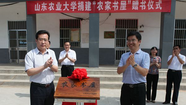 7月1日,在建党94周年到来之际,党委书记徐剑波到东平县接山镇夏谢五村、朝阳庄村和尹山庄村,考察调研威尼斯官网新一轮“第一书记”帮包村“抓党建、促脱贫”工作,为三个村送去学校捐赠的两万余册图书,并与东平县委书记赵德健共同为帮包村“农家书屋”揭牌。