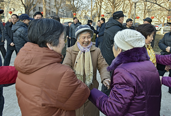 2月8日,农历大年初一早上,学校在夕阳红广场举行春节团拜活动,校领导和离退休老同志、教职工们欢聚一堂,共贺新春佳节。