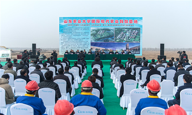 徐剑波在讲话中指出,与黄三角农高区、东营市、山东省科技厅合作共建国际现代农业科教基地,是山东农大服务国家重大战略、拓展办学空间、履行责任使命的重大机遇,更是创新发展理念、集聚科教优势、推动山东现代农业高质量发展的重要举措。学校将对标国际先进、国内一流,主动协同打造科学研究、人才培养、创新创业、成果转化、社会服务、国际合作、文化传承为一体的创新型科教基地。一是拓展学科领域,打造农科专门人才培育基地。结合区域需求,建设海洋与水产、草业与生态、现代农业等学科群。积极发展研究生教育和继续教育,培养实践和创新创业过硬的新农科优秀人才。二是集聚优势力量,打造现代农业科技成果研发、转化和示范区。围绕盐碱地利用与改良、海洋资源利用、生态建设等领域,引进和培养高层次人才,组建高水平协同创新团队,力争产出一批突破性原创成果。围绕国际现代农业产业链,重点面向一二三产业融合发展打造科技创新平台及成果转化基地,充分发挥示范带动作用。三是加强国际合作,打造具有国际影响力的科教平台。对接国际一流大学,合办高水平办学项目,打造具有全球影响力的国际协同创新和交流平台。借助“一带一路”农林科技教育合作联盟,推进沿线国家国际人才培养、农技人员培训、合作研发中心建设等实质性合作,提升服务国家战略和国际化水平。我们相信,在省科技厅、东营市委市政府的大力支持和黄三角农高区管委会的积极努力下,科教基地一定能成为国际先进、国内一流的农业“硅谷”,一定能成为国内外杰出农业科技人才的“集聚地”,为我国乃至世界农业的可持续发展道路提供理论创新与实践借鉴。