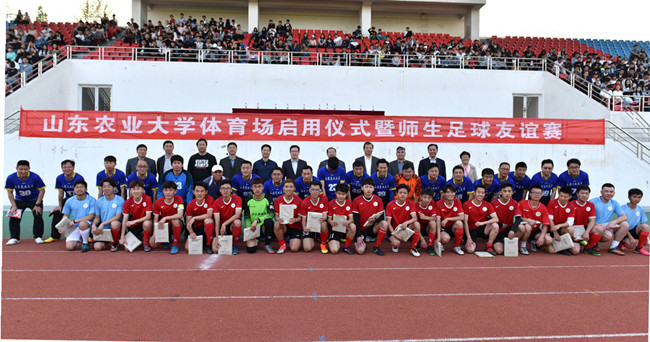 仪式后,师生足球队代表与到会领导合影留念。在随后的比赛中,教工足球队以5比2战胜学生足球队。学校办公室、学工处、后勤处、南管委、体艺学院等相关负责人及师生代表出席活动。
