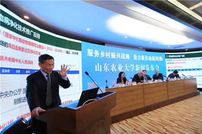 5月8日,在学校“服务乡村振兴战略助力新旧动能转换”新闻发布会上,陈学森教授和崔治中教授分别发布了“苹果和梨新品种优质高效育种和生产技术及应用”“禽病毒性肿瘤病综合防控技术及推广应用”两项成果,并现场回答了中央电视台、山东电视台记者的提问。