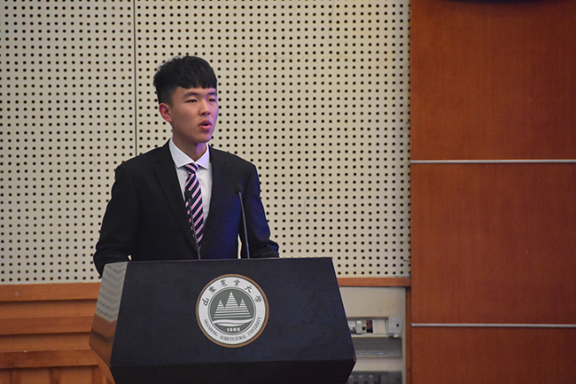 赵弘扬是威尼斯官网机电学院车辆工程专业2015级学生,中共预备党员,智育成绩全院第一,荣获国家奖学金、山东省高等学校优秀学生、学校十佳大学生等18项校级及以上荣誉;荣获全国三维数字化创新设计大赛特等奖2项、山东省高校机器人大赛一等奖2项等省级创新创业竞赛奖励20项,授权实用新型专利2项,发表学术论文6篇;担任学院学生会创新发展部部长,2017级3班班主任助理等职务,组织创新创业活动,被评为“优秀学生干部”“最美机电学子”等。