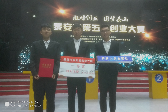 大二下学期,他和他的小伙伴们一起成立了“护林人”创业团队。虽然学业压力很大,但是他们把压力换成了“考验自己的毅力”。他们守在实验室里,制作作品,有时一干就是一整天。“睡醒觉洗把脸就跑到实验室,有时忘了吃饭,竟然不觉得饿。”对于一些关键问题,他经常在实验室里来回踱步,与小伙伴们敞开了交流,进行头脑风暴,不知不觉,讨论研究到凌晨1点。经过近半年的讨论、修改,他们研发出了“智能林木修枝机器人”,填补了我国智能修枝的空白。为更好地了解市场,验证产品效能,他们抬着沉重的设备,冒着高温,在周边进行调研和推广。集市上、街道上、小区里、村落中都有他们的身影,“修枝机器人”以良好的性能,创新的剪枝方式,吸引了许多目光,取得了很好的效果。团队更是在山东省“互联网+”大赛、农科类创新创业大赛等赛事中,获得了两项一等奖,五万元的创业奖金。