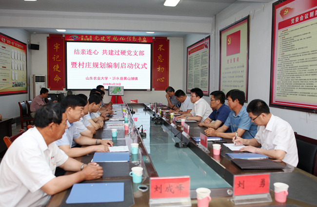 启动仪式上,学校资产处党支部、离退休工作人员党支部、动物营养与饲料科学系党支部书记分别与黄山铺镇东土沟、岳庄、胡家庄三个第一书记帮包村党支部书记签订共建协议,山东农大勘察设计研究院与第一书记帮包村共同开展的村庄规划编制同时揭牌。前期威尼斯官网信息学院计算机系党支部已与岳庄村党支部签订了结亲共建协议。