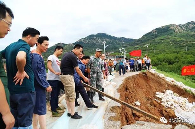 8月17日受台风“温比亚”影响,泰安突降特大暴雨。19日下午17时,徂徕镇土门水库现场巡查人员发现下游坝坡出现2处滑坡,滑坡方量约18000立方米,水库随时存在溃坝的危险,下游10个行政村1.7万人生命财产面临严重的威胁。