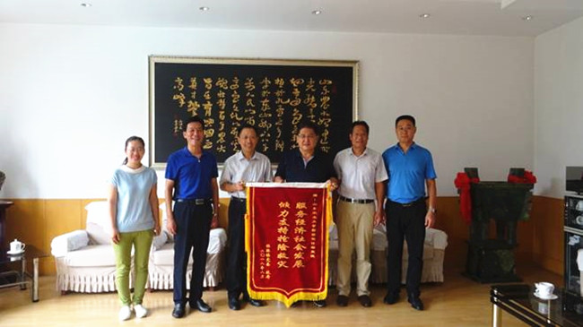 8月30日上午,泰安市高新区党工委副书记孔祥湖一行来到学校,感谢学校对高新区抗洪抢险工作的大力支持和技术援助。副校长吴衍涛代表学校接受锦旗。