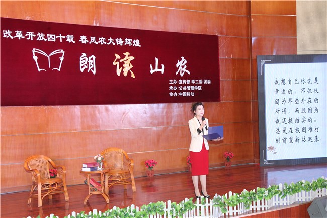 “朗读山农”是山东高校思想政治工作十大建设计划重点项目,目前已举办三届。活动由党委宣传部、学工委、校团委主办,公共管理学院承办,学校有关部门、学院负责人及师生代表参加活动。