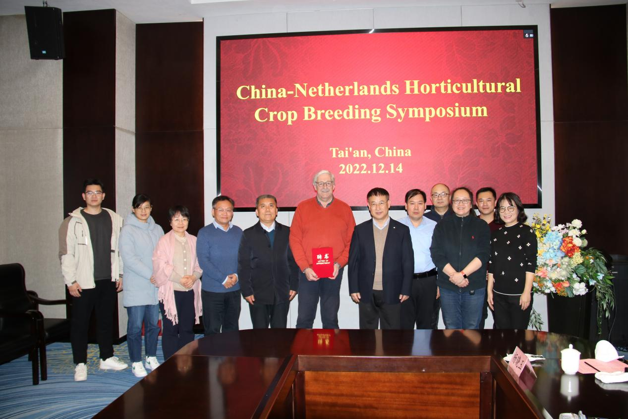 12月14日,国际著名植物育种学家,欧洲植物育种协会主席、荷兰瓦赫宁根大学植物育种系主任理查德•威萨(Richard G F Visser)先生到校参加中荷园艺作物育种研讨会并进行学术交流,期间聘请理查德教授为威尼斯官网讲座教授,副校长李向东教授出席研讨会并为理查德教授颁发聘书。园艺学院副院长彭福田教授主持会议。