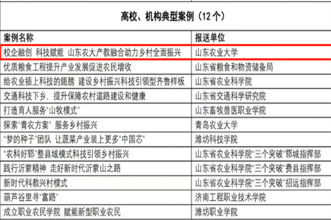1月9日,“2022山东乡村振兴典型案例推选活动暨乡村振兴短视频大赛”名单正式发布。学校推荐报送的《校企融创 科技赋能 山东农大产教融合助力乡村全面振兴》获评山东乡村振兴典型案例一等奖,《一颗“乡村振兴”梨》获评乡村振兴短视频大赛二等奖。