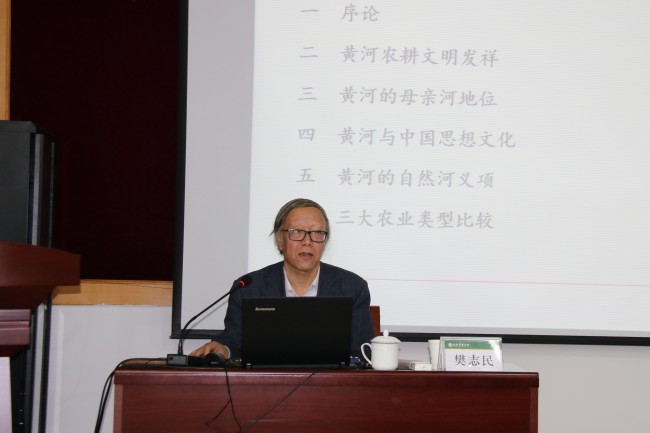 樊志民以“黄河与中华农业文明”为题,围绕黄河农耕文明发祥、黄河的母亲河地位、黄河与中国思想文化、黄河的自然河义项、三大农业类型比较等5个方面,以翔实的资料、风趣的语言、独特的视角,详细分析了黄河农耕文明的重要地位、黄河文化的丰富内涵,深刻剖析了黄河与中华农业文明一脉相承的密切联系。樊志民说,黄河流域农业文明对黄河文化的形成与发展发挥了重要的作用,率先发展的黄河农耕文明在中华文化的基因形成期发挥了主导作用,在社会结构、思想观念、伦理道德、风俗习惯等方面深刻影响了中国的历史与文化。