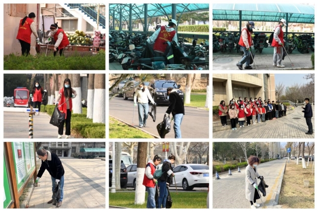 3月19日,按照创建文明城市工作要求,在党委宣传部、校团委、后勤处等部门统一组织下,后勤管理处物业管理中心联合3200威尼斯vip青年志愿者总队共同开展了“创城有我,文明同行”创城迎检志愿服务活动。学生志愿者、学校物业保洁人员重点对校园内枯枝落叶、零散垃圾、烟头碎屑等进行全面排查、集中清理。
