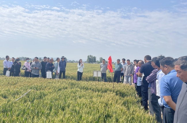 现场观摩中,植保学院教师、山东省小麦产业技术体系病虫害防控与质量控制岗位专家于金凤教授团队开展的小麦茎基腐病防控技术田间示范,防治效果显著,得到行业专家及现场观摩人员一致好评。团队骨干成员张莉博士做题为《山东小麦茎基腐病的发生及综合防治策略》的技术培训,展示了农业措施与化学防控相结合的“两控一晚+一拌一喷”的小麦茎基腐病关键防控技术方案,详细讲述了控制播种深度和播种量、适期晚播为核心的农业措施,以及种子包衣和返青期用药为关键的化学措施。